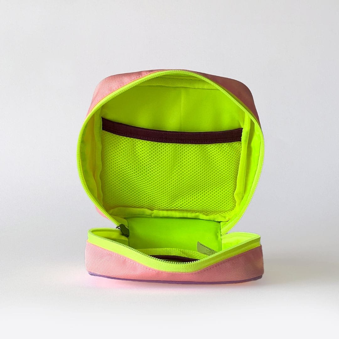 Esta pequeña perla es grande en protección y orden. Está hecha con tela repelente al agua, protegiendo tus pertenencias de cualquier imprevisto de humedad. En su interior, cuenta con dos compartimentos con malla que te permiten ver exactamente qué tienes por dentro, lo que lo hace amplio, cómodo y cero estorboso al momento de buscar. Nosotros lo usamos full para que las cositas chiquitas que llevamos no se pierdan, asegurando que siempre tengas todo a la mano.