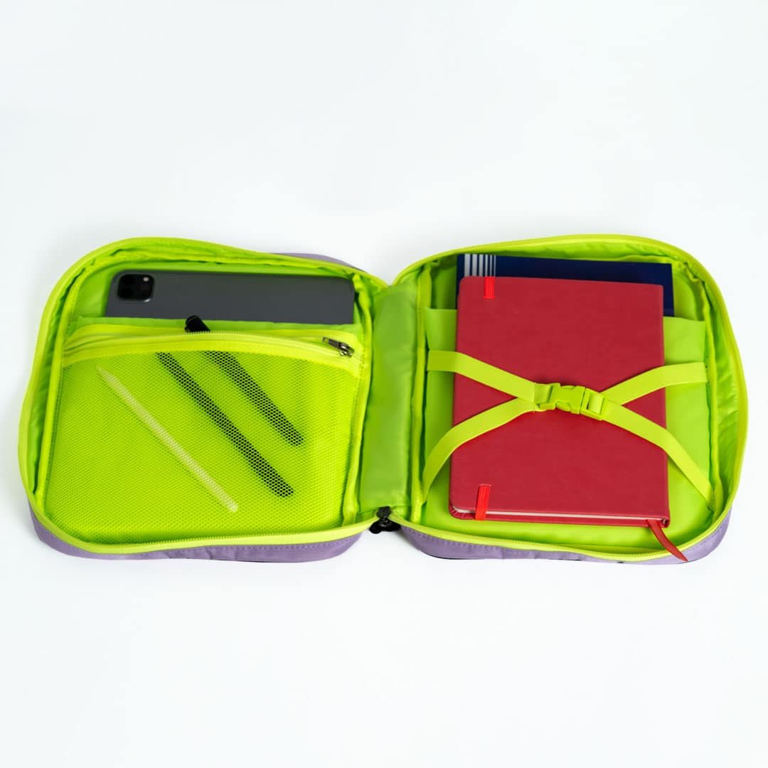 Fabricado en lona impermeable, el Portalibros Barú te permite llevar uno o hasta tres libros, ya sean grandes o pequeños, según lo que necesites. En su interior, cuenta con dos bolsillos acolchados, ideales para proteger dispositivos como tu iPad o Kindle. Además, incluye un bolsillo de malla con cierre, perfecto para guardar sticky notes, resaltadores o cualquier accesorio que te ayude a disfrutar aún más de tus lecturas.
